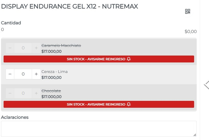 Pueden solicitar aviso de ingreso sobre cualquier producto o variante de sabor que no se encuentre en stock. Cuando la mercadería ingrese, recibirán al correo una notificación.