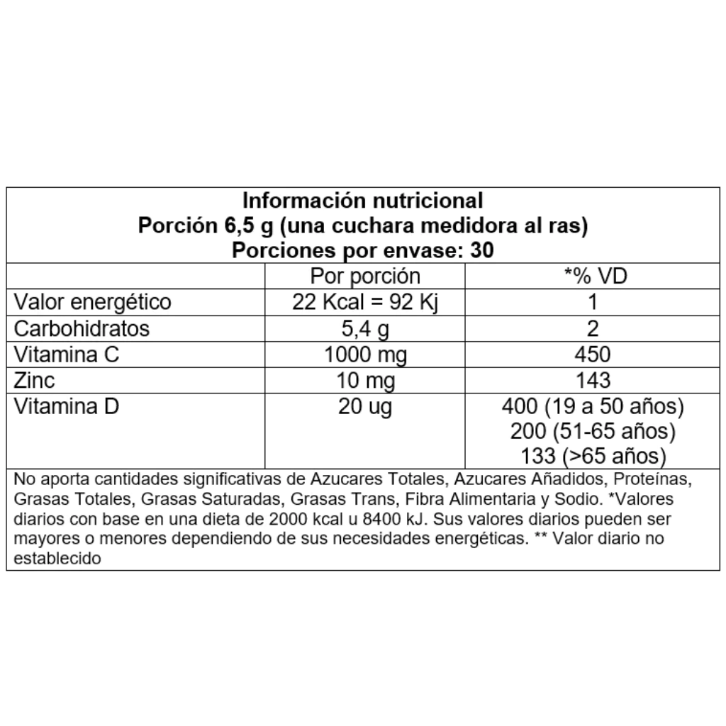 Vitamina C 1000 mg en polvo con Zinc y Vitamina D