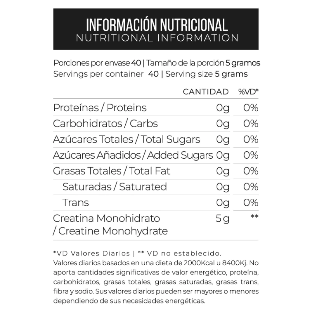 Contiene 5 gr. de creatina pura y tan sólo 20 calorías por porción.