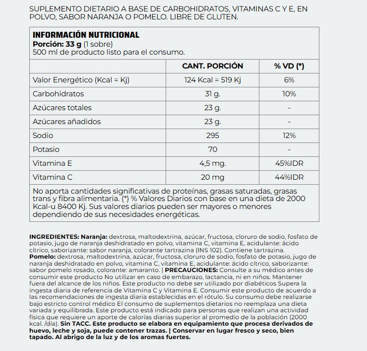 Fórmula exclusiva con vitaminas C y E: Estas vitaminas antioxidantes ayudan a combatir el estrés oxidativo generado por el ejercicio intenso y favorecen la adaptación al calor, protegiendo tu organismo.