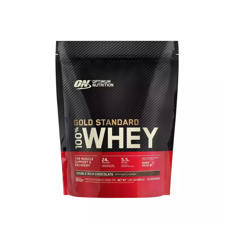 Cada porción de la proteína de suero en polvo más vendida del mundo proporciona 24 gramos de proteína de suero de alta calidad, principalmente a partir de aislado de proteína de suero, al que se le ha "aislado" el exceso de carbohidratos, grasas y lactosa mediante sofisticadas tecnologías de filtrado. El polvo también se instantáneamente para mezclarlo fácilmente usando solo un vaso y una cuchara. Con más de 20 sabores diferentes, incluidas opciones con sabores naturales, no hay duda de que esta es la proteína de suero Gold Standard 100% de Optimum Nutrition.