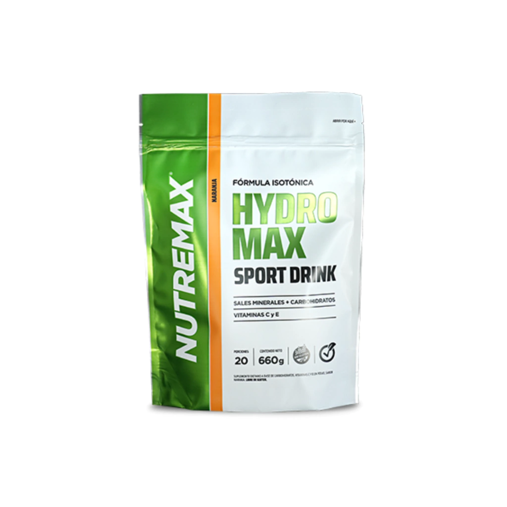 Hydromax Hydromax es una bebida isotónica desarrollada para facilitar la rehidratación y la reposición de sales minerales. Su exclusiva fórmula, fuente de vitaminas C y E, aporta carbohidratos, retrasa la fatiga y mejora el rendimiento físico. La combinación adecuada de carbohidratos y electrolitos logra una bebida isotónica que acelera el proceso de rehidratación. Repone carbohidratos: su consumo es fundamental para retrasar la fatiga y mantener la intensidad del ejercicio o trabajo durante más tiempo. Suma electrolitos: los electrolitos sodio, cloro y potasio reponen lo que se pierde por sudoración y mejoran la absorción de agua. Fuente de vitaminas antioxidantes: el aporte de vitaminas C y E desactivan los mecanismos de oxidación originados por el ejercicio intenso y mejoran la adaptación al calor. Su sabor agradable y ligero permite su consumo aún en condiciones desfavorables de temperatura.