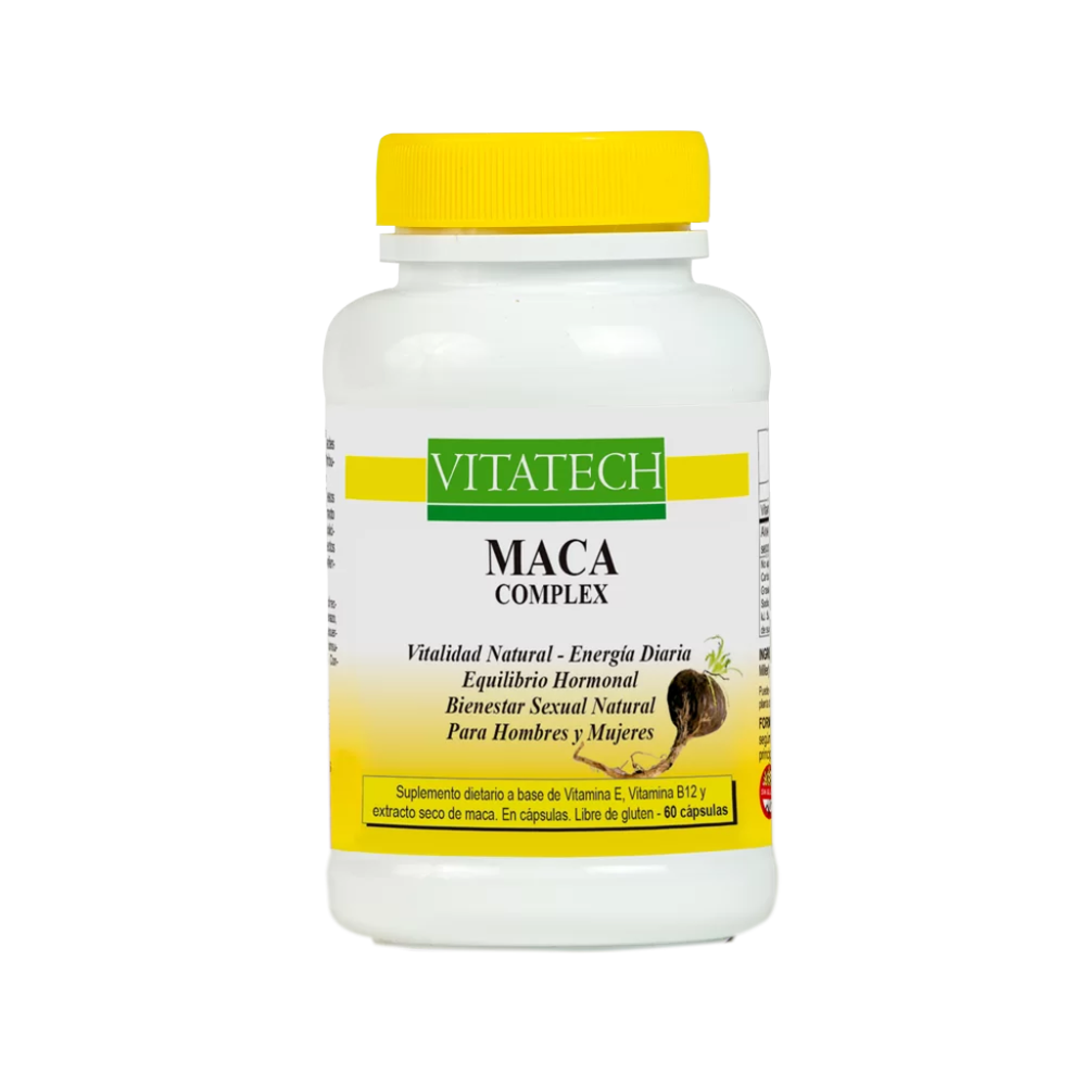 MACA COMPLEX de VITATECH es un suplemento completo que une vitalidad, resistencia fĂsica, claridad mental, bienestar sexual y equilibrio hormonal, ideal para quienes buscan un impulso natural para cuerpo y mente.