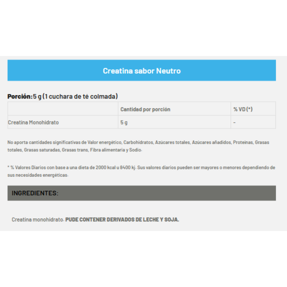 - Formula pura con un solo ingrediente: CREATINA MONOHIDRATO.
