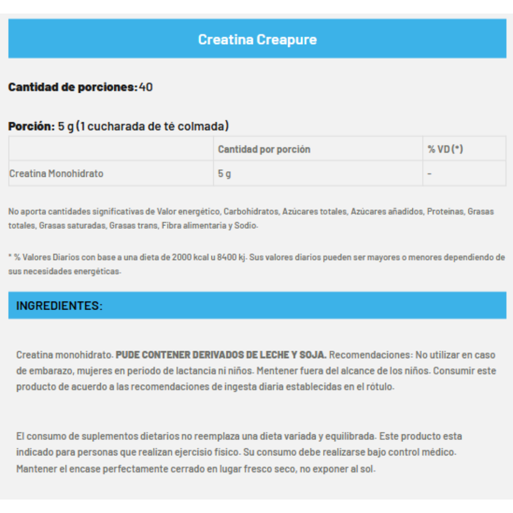 Desata tu máximo potencial con nuestra Creatina Monohidrato Creapure. Un producto de alta calidad diseñado para optimizar el rendimiento físico de atletas y profesionales del deporte. Con una pureza del 100%, Creapure es reconocida por su excepcional concentración y efectividad.