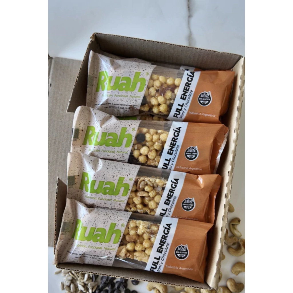 Ingredientes: Quinoa inflada, Maní tostado, miel, pasta de maní, Dátiles, semillas de girasol, fibra soluble (FOS), chocolate semiamargo, castañas de cajú, albúmina de huevo hidrolizada.