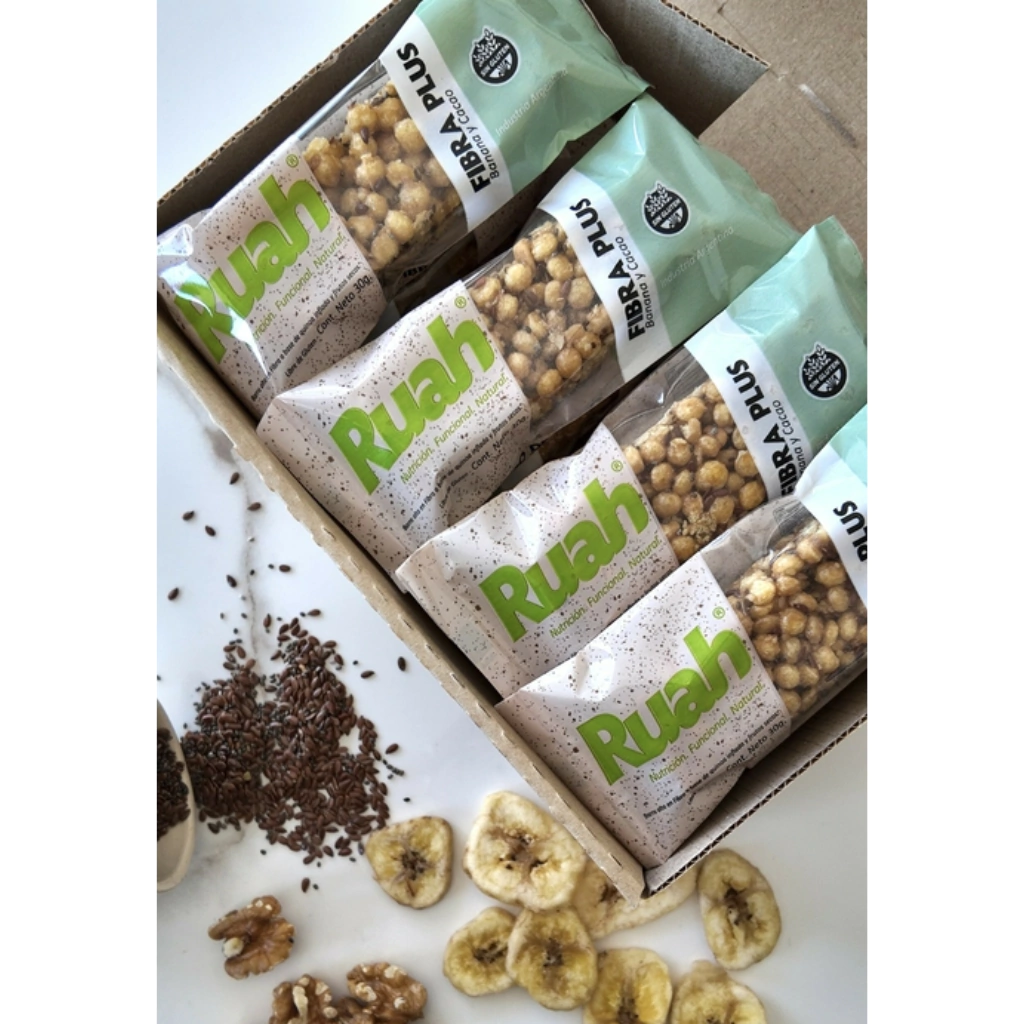 Ingredientes: Quinoa inflada, miel, Fibra soluble (FOS), chips de banana, pasta de maní, nueces, maní tostado, semillas de lino, semillas de chia, cacao.